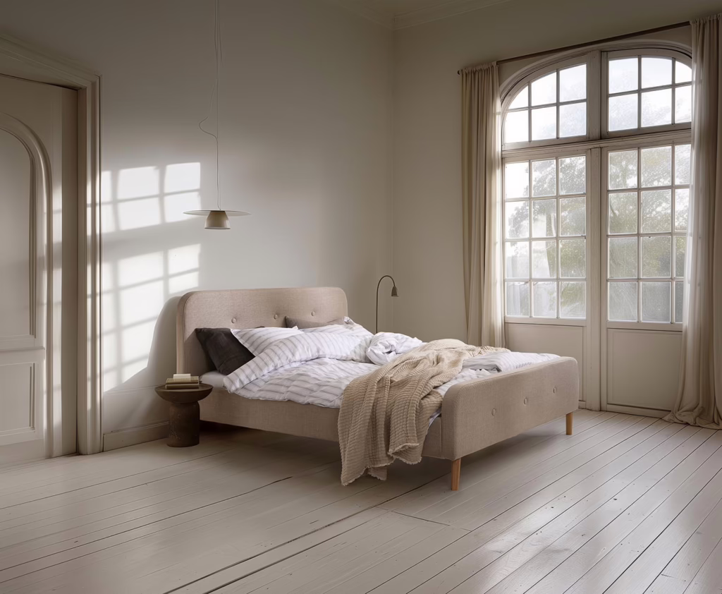 Rummet blev genereret først og så blev sengen skudt på studiet i passende vinkel.